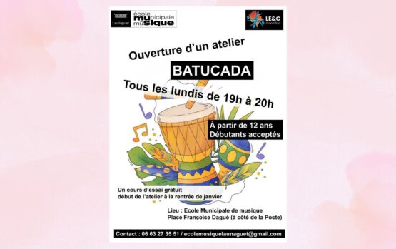 🎶 Nouvel atelier à Launaguet ! 🎶L’École municipale de musique ouvre un atelier Batucada tous les lundis de 19h à…